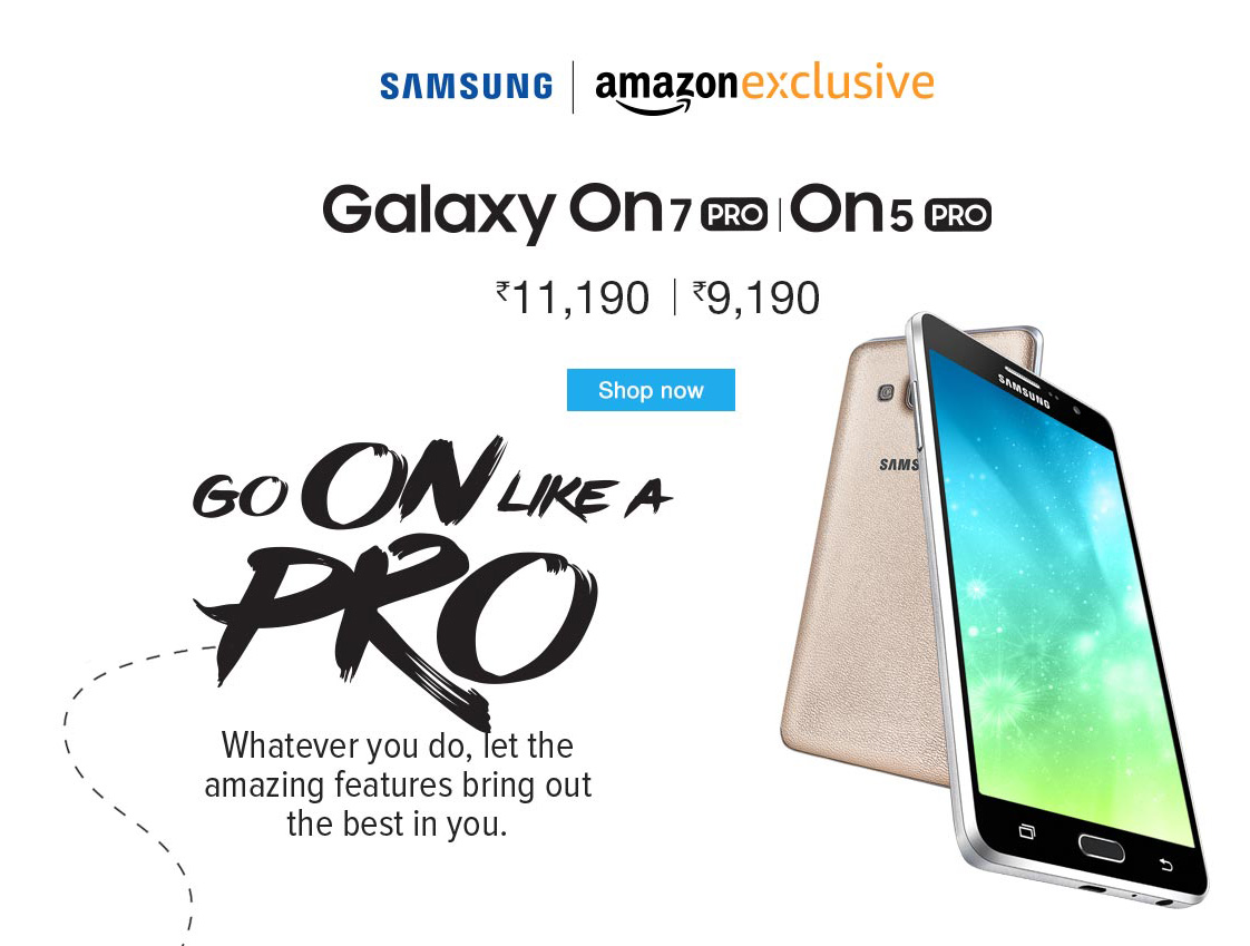 Samsung today launched two new devices for the Indian market called Galaxy On5 Pro and Galaxy On7 Pro that will be the successors to the Galaxy On5 and Galaxy On7 launched last year. Both the new devices are now available exclusively on Amazon India and are priced at Rs. 9190 (around $137) and Rs. 11190 (around $167).Both these devices comes with Ultra Data Saving mode powered by Opera Max that can give up to 50% data savings and both comes with S bike mode support as well.