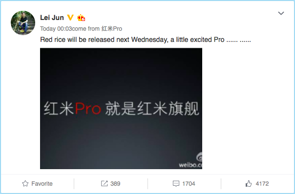 The Xiaomi Redmi Pro had before now not been announced by the Chinese company to be among the gadgets they will be releasing on July 27. However, Xiaomi’s CEO and Founder Lei Jun, seem to have wholesomely confirmed that the Redmi Pro would be released on July 27. Lei Jun wrote on his Weibo page today, expressing excitement about the Redmi Pro billed to be released at the Xiaomi news conference next Wednesday being July 27.