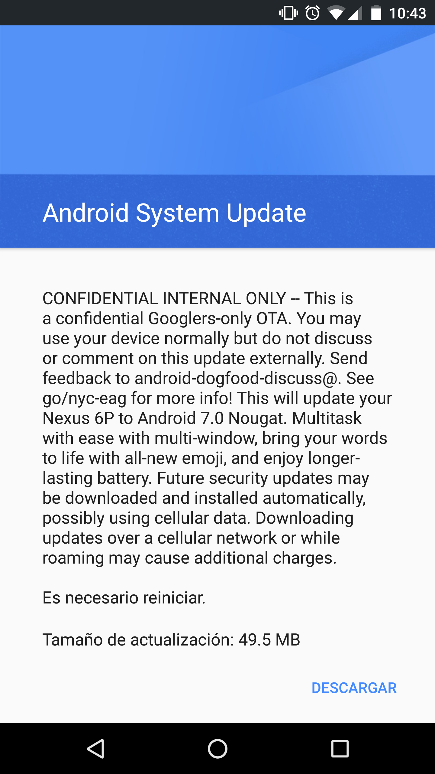 @evleaks tweeted,” Android 7.0 releases next month, with the 8/5 security patch. Sorry Nexus 5 owners, no Nougat for you” on their Twitter account about this and has also confirmed that their will be no Nougat update for Nexus 5 users. Meanwhile, a user on Reddit reported that he got the Android 7.0 Nougat update accidentally on his Nexus 6P device. He also posted some images from the device and the update comes with 49.5 MB size and he was the only one to receive it.