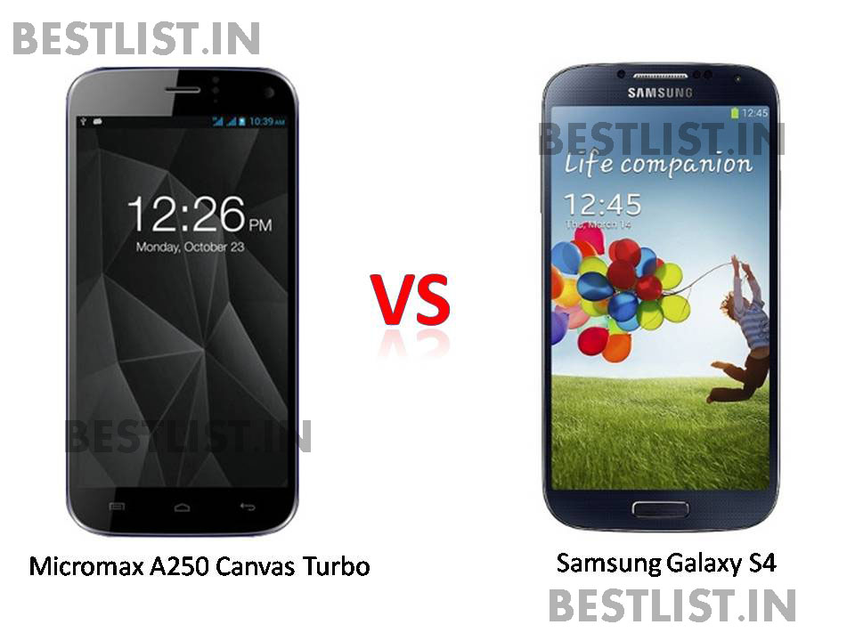 Does Micromax A250 Canvas Turbo in houses that potential to affect the sales figures of Samsung Galaxy S4? Let’s find out in the super heated specs comparison of the duo.