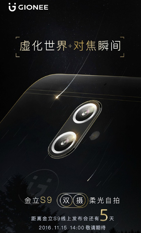Gionee S9 launching on November 15 with dual-rear cameras, hits AnTuTu as well