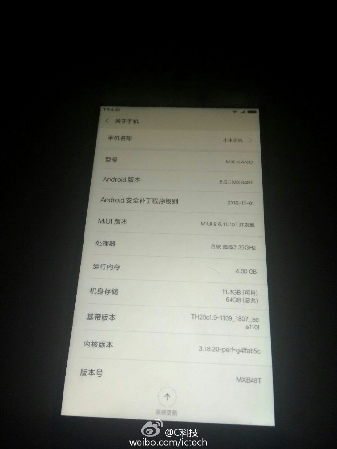 As per the tipster at weibo, the Xiaomi Mi Mix Nano will feature a 5.5-inch HD display and will be powered by the latest Snapdragon 821 processor that also powers the Mi Mix phone. This new device will have 90 percent screen-to-body ratio while the Mi Mix was having 91.3 percent screen-to-body ratio. This device will run on the Android 6.0 Marshmallow OS out of the box and will have 4GB of RAM with 64GB of internal storage capacity.