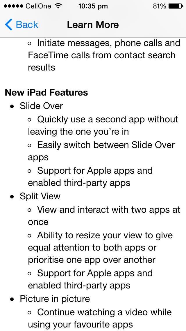 iOS9 comes with new Siri features and multitasking window. Another new thing i noticed is the search window added to home screen, to access swipe the screen to right and the first window is the search window. You can use the Siri to find out your desired things in your Apple device.