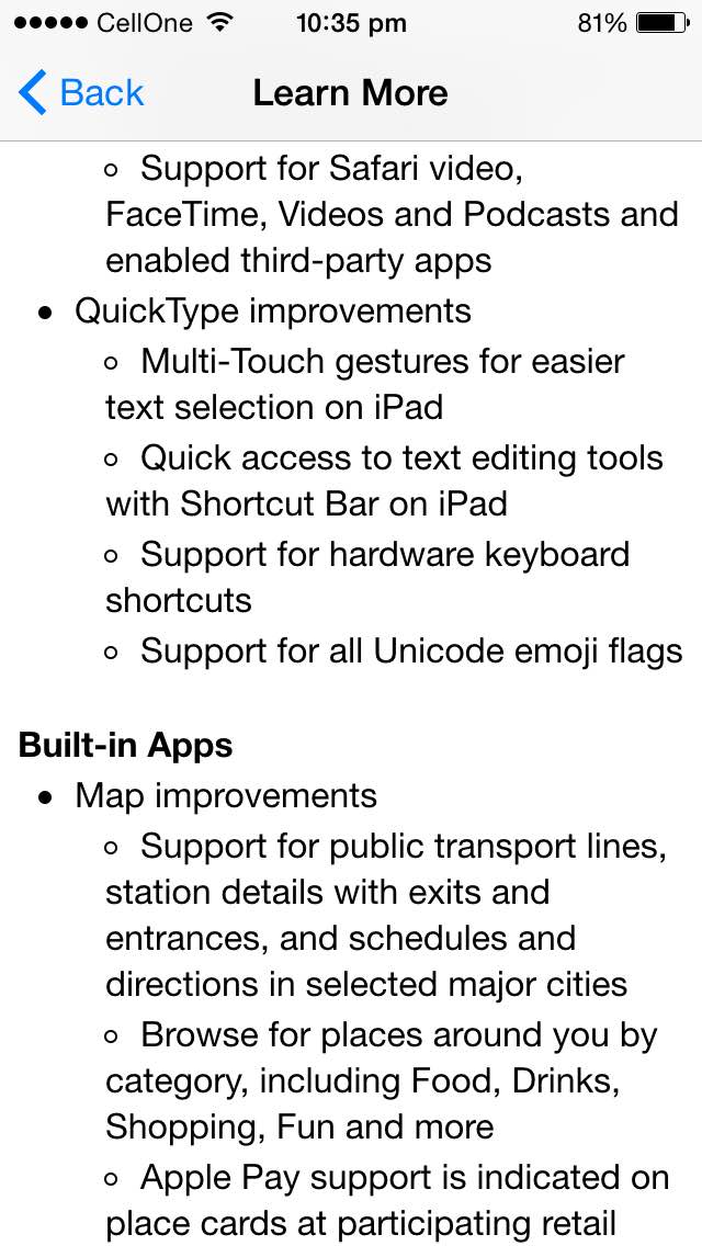 The iOS9 comes with new improved keyboard. Wallet app is also updated. I have also noticed two new icons, first one is the iPhone finder and 2nd one is the Find friends icon. Apple was also supposed to rollout the new watchOS 2.0 OS but due to a bug in development of watchOS 2 delayed its rollout.