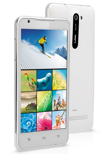 Lava Iris 503e comes with 5 inch FWVGA Capacitive display with reolution of 854×480 pixels. It is powered by a 1.2 GHz Dual Core processor with 512 MB RAM and 4GB inbuilt storage with expandable storage upto 32 GB via microSD card.