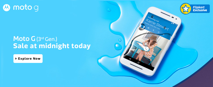 Moto G 3rd Gen will also be available in India from today’s midnight on Flipkart for Rs. 11,999($188) for 8 GB variant and Rs. 12,999($204 approx.) for 16GB/2GB RAM variant. Its available in black and white variant on flipkart.