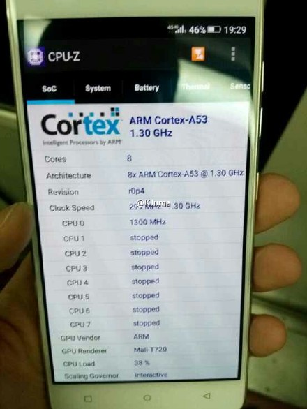Online tipster, Kjuma has just posted some hands on images of Gionee S5.1 Pro smartphone. The images confirms that S5.1 Pro will be powered by a 1.30 GHz ARM Cortex-A53 8 cores MTK6753 MediaTek CPU and Mali-T720 GPU.