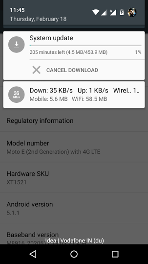This update is available OTA and comes with 454MB size. To update users must be on the WiFi network with over 80% battery available on the phone. The Android marshmallow update also comes with February Android security patch also. This is a good news or all Moto E 2015 users in India. IF you haven’t received the update notification you can manually check for the update by going to Settings> About Phone> System Update and follow the instructions to update your Moto E.