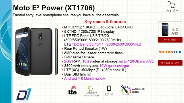 Moto E3 Power for sale in Hong Kong with a 3500 mAh battery
